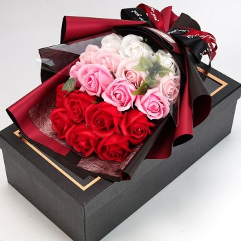 01.유니팡 비누 조화 로맨틱 이벤트 그라데이션 장미 꽃다발 18송이 선물 박스 세트