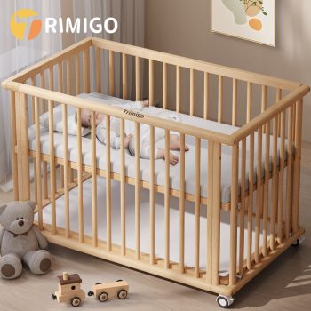 01.Trimigo 원목 아기침대 유아 원목 다기능 이동식 침대 baby 신생아 원목침대+ 유아전용 매트리스 포함, 원목색상
